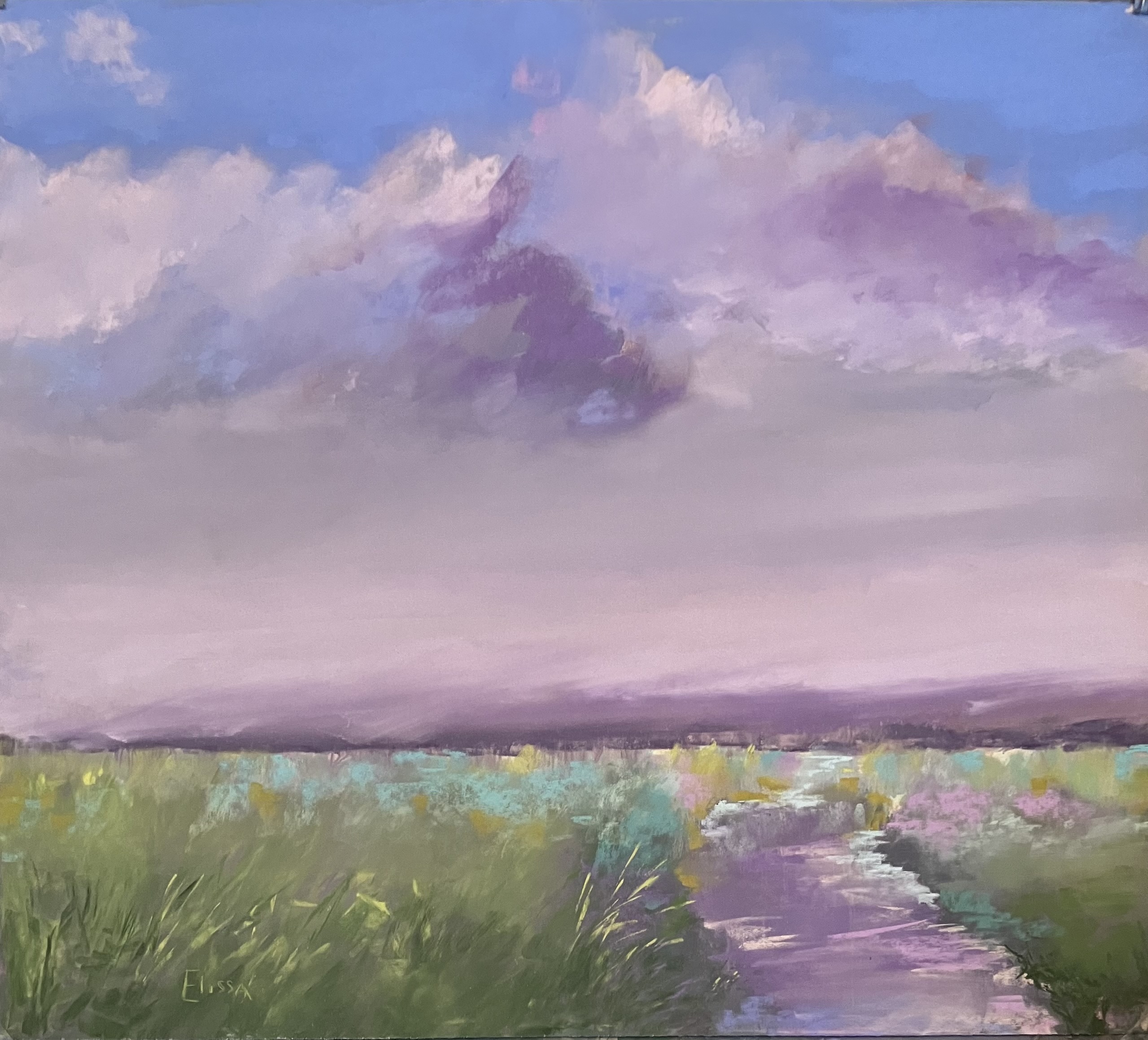 Elissa Goldberg works primarily in pastels to capture scenes from her travels. The medium allows for an immediate expression of her ideas and to create paintings with simultaneously subtle yet bold color. Using various techniques, she captures the soft sea spray of waves and the soft sand of windswept dunes. There is an intentional hint of the abstract to Elissa’s work allowing the viewer to become involved with the scene rather than simply observe it.