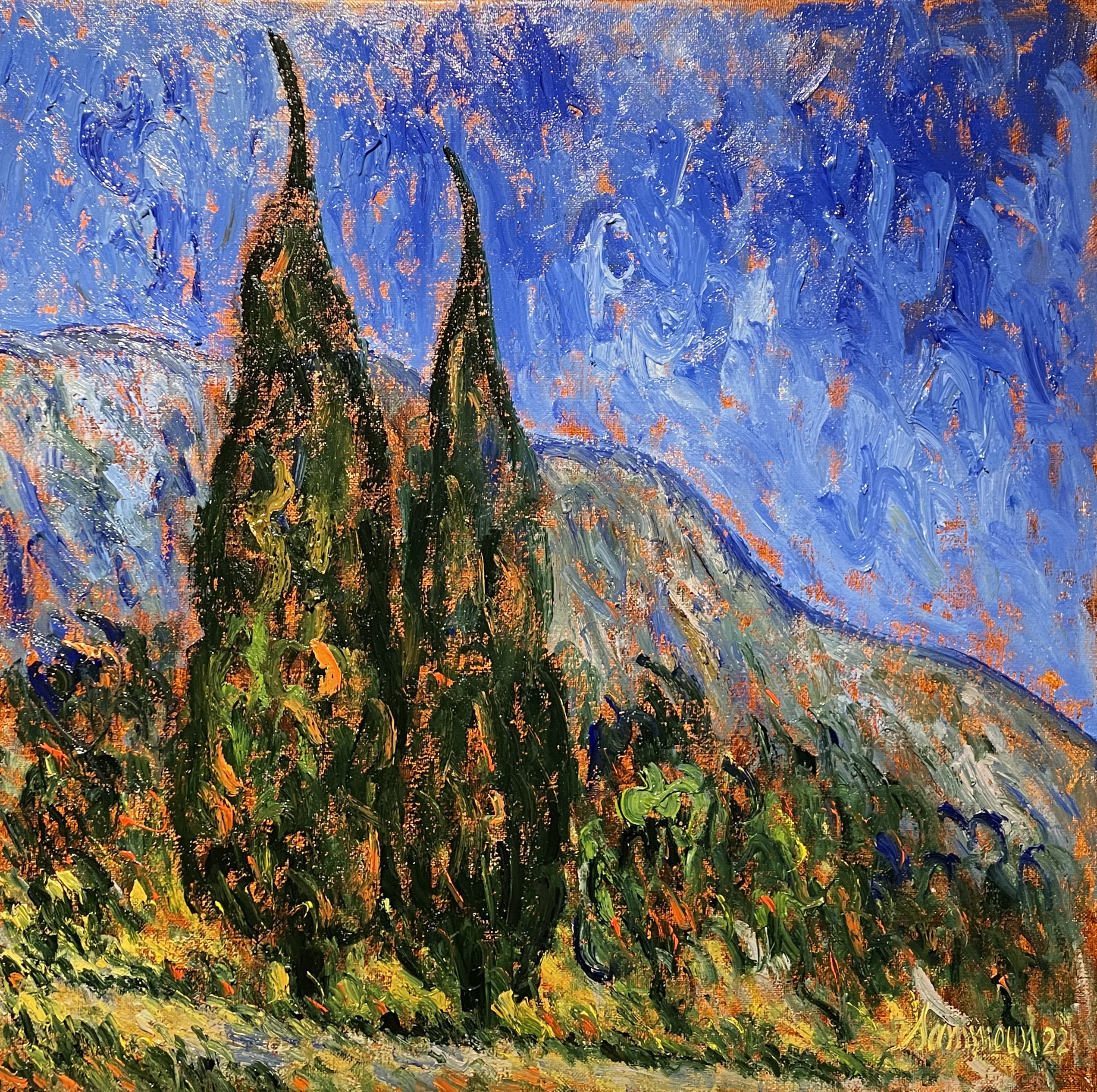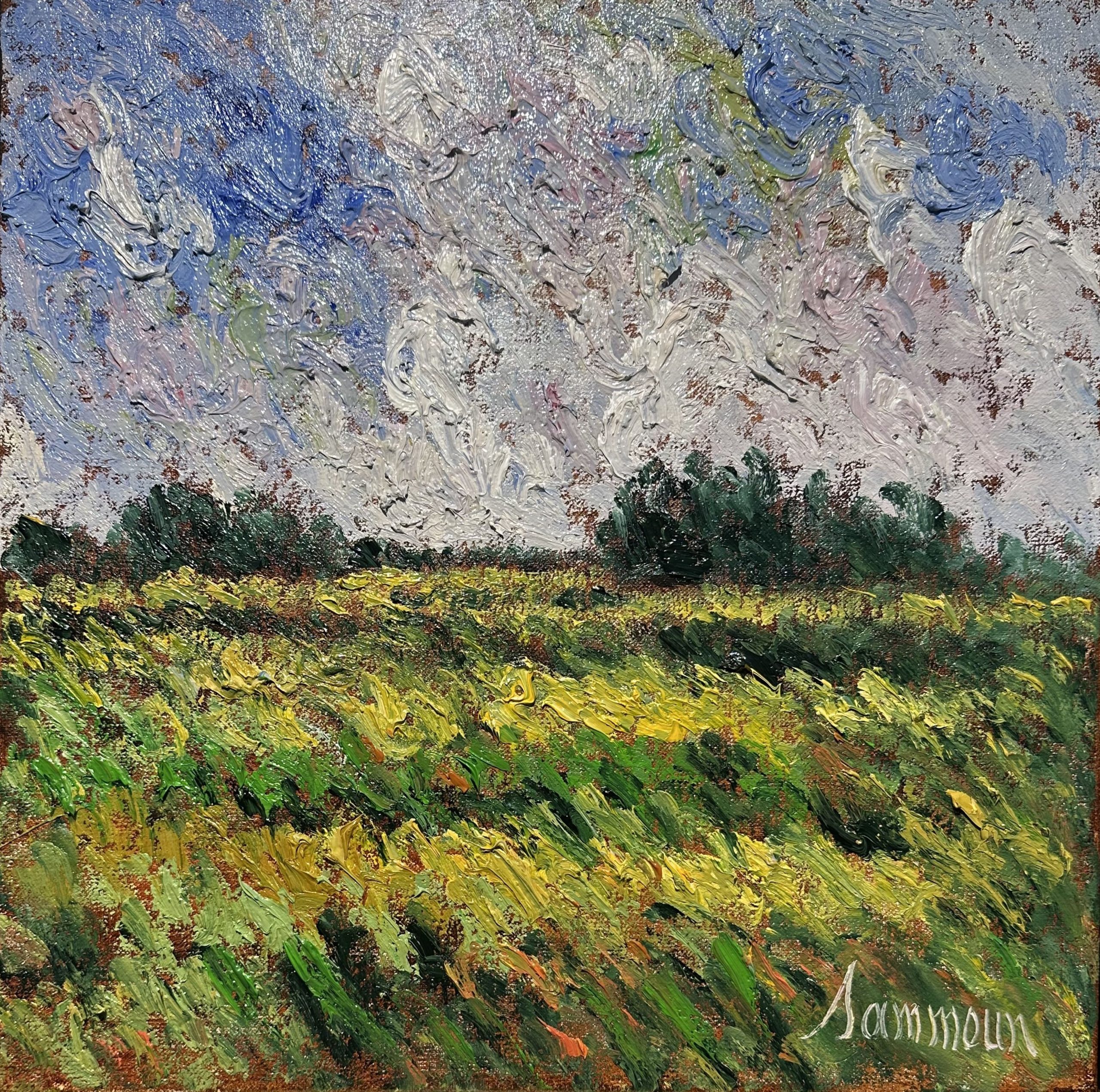 Samir Sammoun uses the texture of his specially gessoed linen canvas to allow the oil to create a sense of drama. His paintings are meant to be viewed from a distance. However, once viewing the work one may find themselves drawn closer to appreciate the deep richness of color and drama created with the swirling movement of the brush. While clearly inspired by Monet and Van Gogh, Samir brings his own distinctive take on French Impressionism to Cape May.